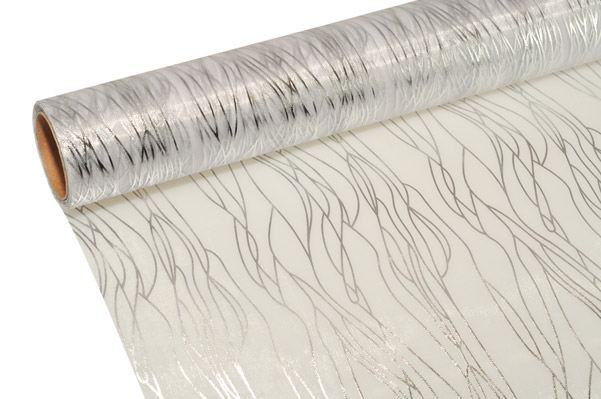 - Organza 39cm x 8m vlnky white/silver