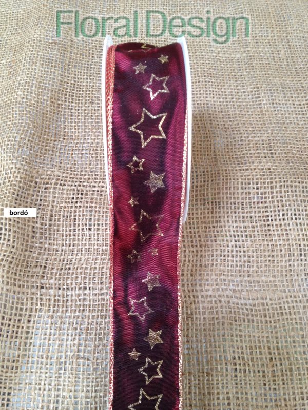 - Stuha hvězdičky s drátkem 40mm x 20m bordó