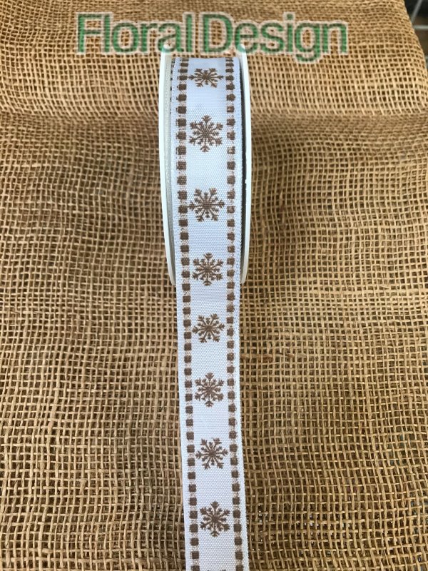 - Stuha vločky s drátkem 25mm x 20m bílá / cream